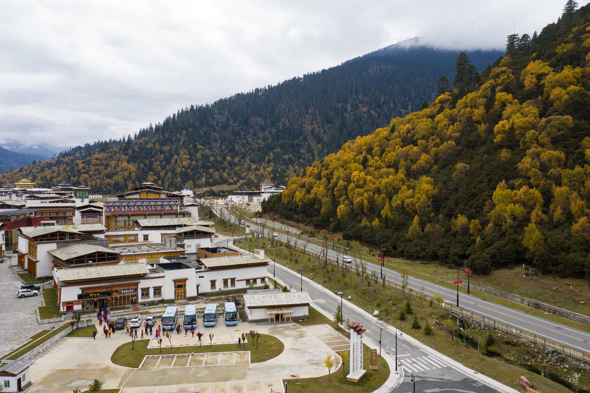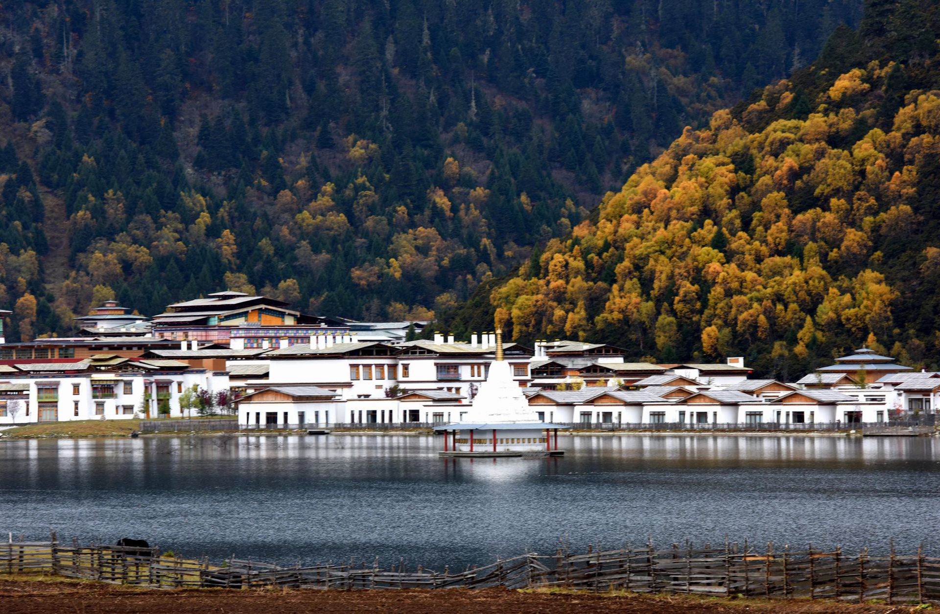 秋日的鲁朗小镇层林尽染。