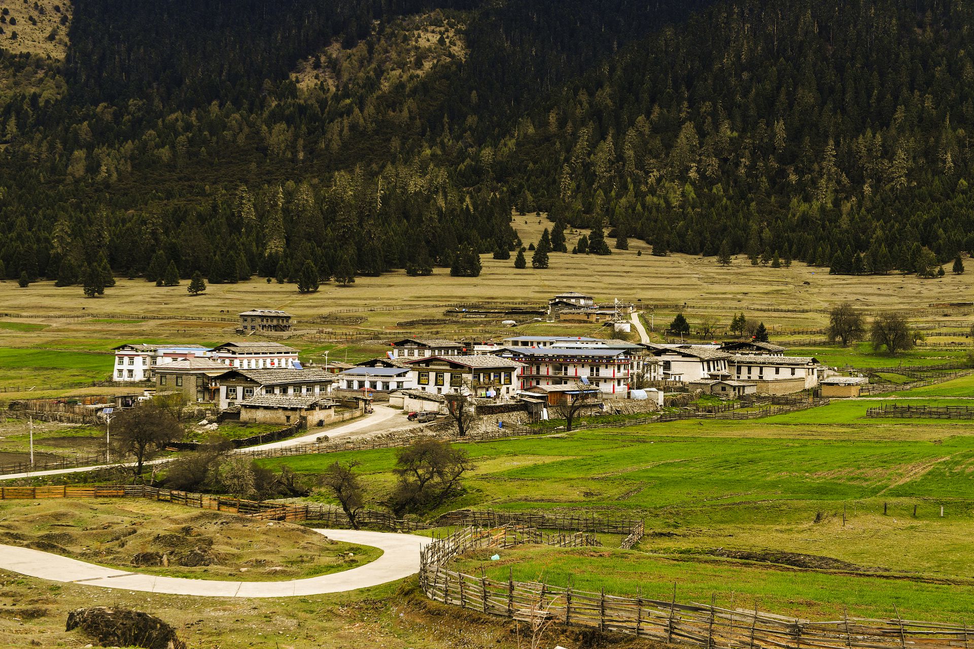 西藏林芝鲁朗小镇风光。