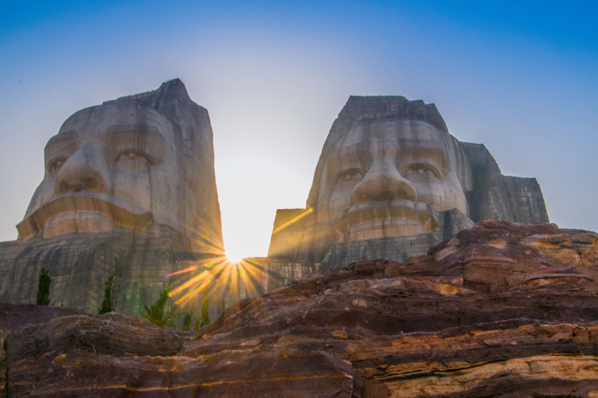炎黄二帝巨型塑像位于郑州市西北部三十公里之处的黄河风景名胜区向阳山,该雕塑106米,是世界上最高的雕塑之一。雕塑以山为体,使山人合一,浑然天成,融黄河、黄土、黄帝三者与一体。