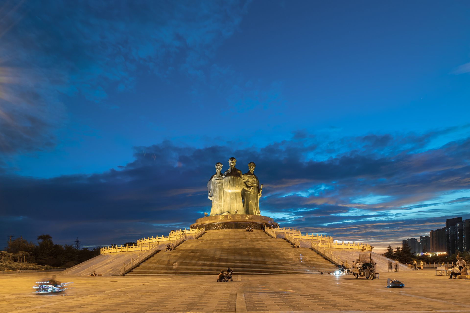 在郑州荥阳有中国历史春秋战国郑国的三位国君雕像。