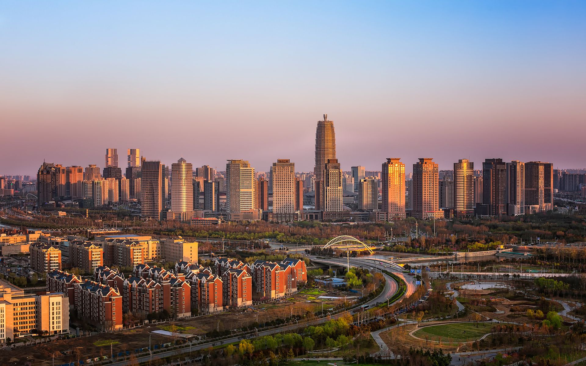 郑州城市地标双子塔风光。