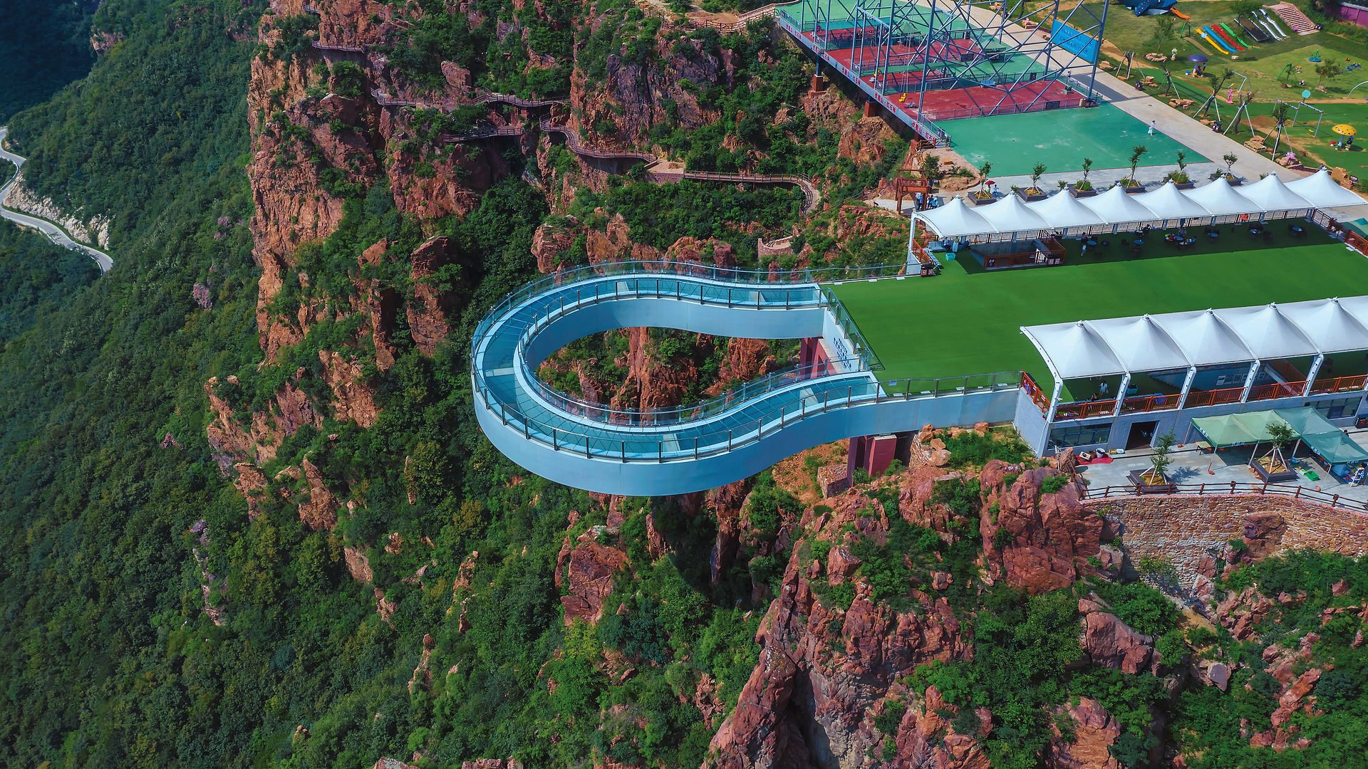 河南郑州新密伏羲山环型栈道。