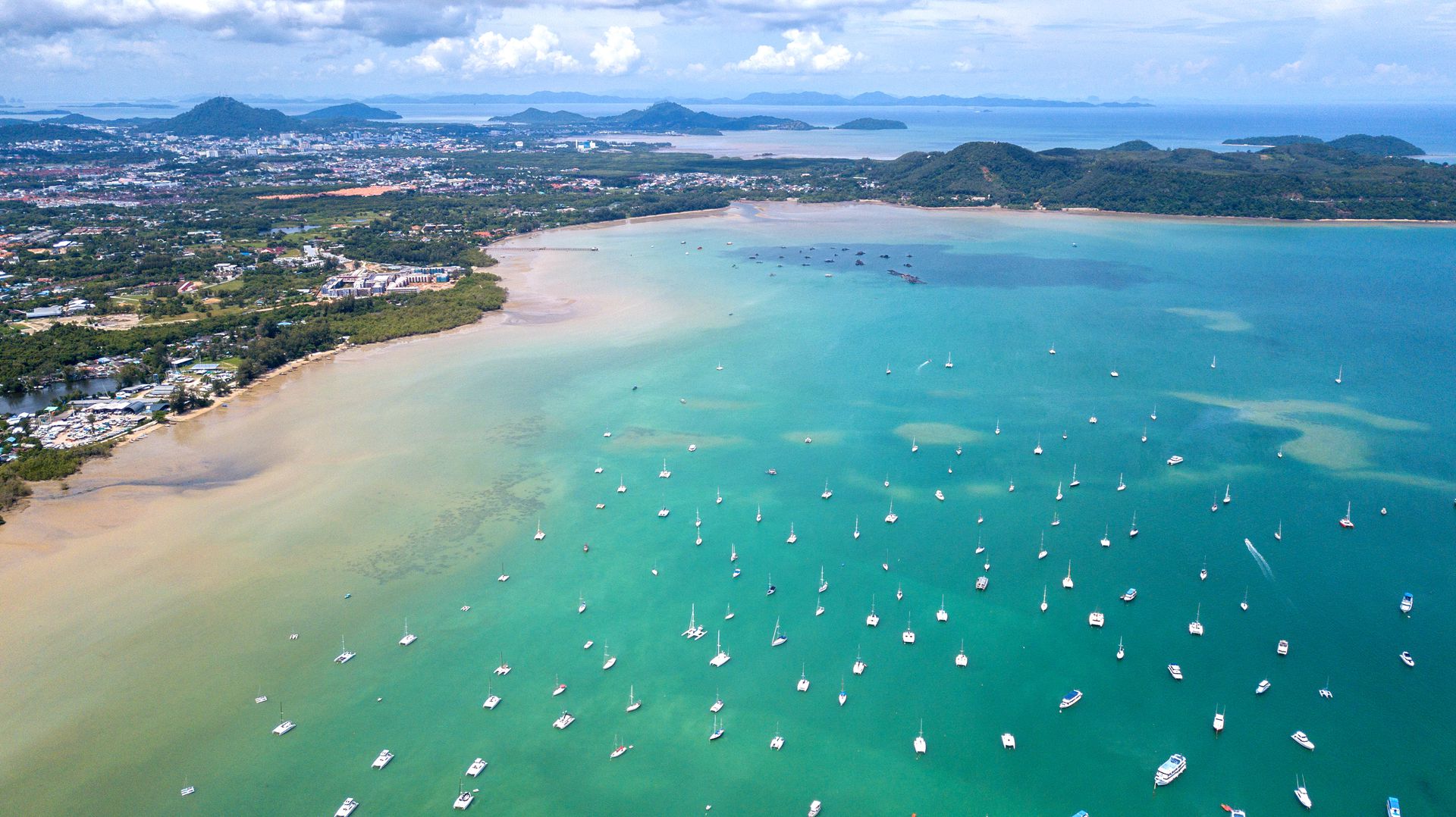 2020年9月14日,停靠在泰国普吉岛岸边的游艇。