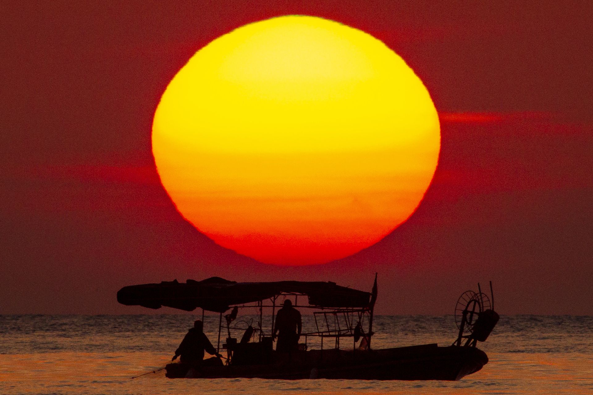 2020年4月18日,在黎巴嫩贝鲁特,一艘渔船穿越地中海Ramlet al-baida 公共海滩。