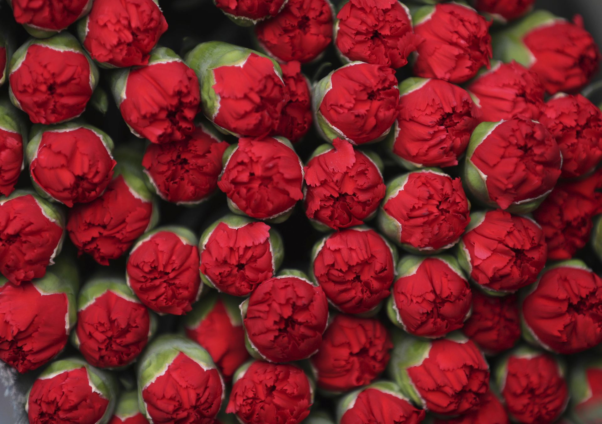 2020年8月25日,一束康乃馨在哥伦比亚马德里的Serruzuela出口公园的花店里。