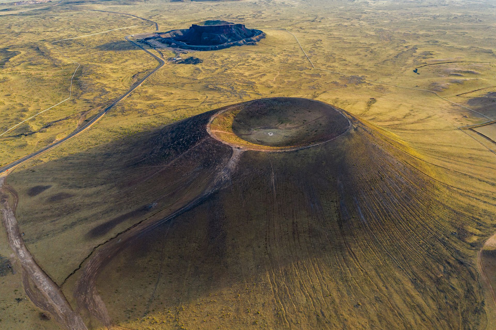 2020年5月20日,在中国内蒙古乌兰察布拍摄的太阳落山前的乌兰哈达火山。