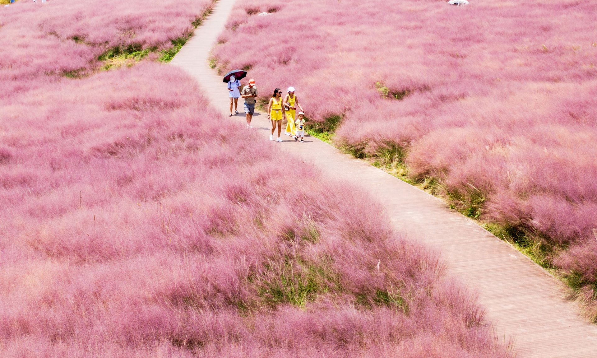 2020年9月2日,中国贵州省长顺县神泉谷景区内由粉黛乱子构成的“粉色海洋”。