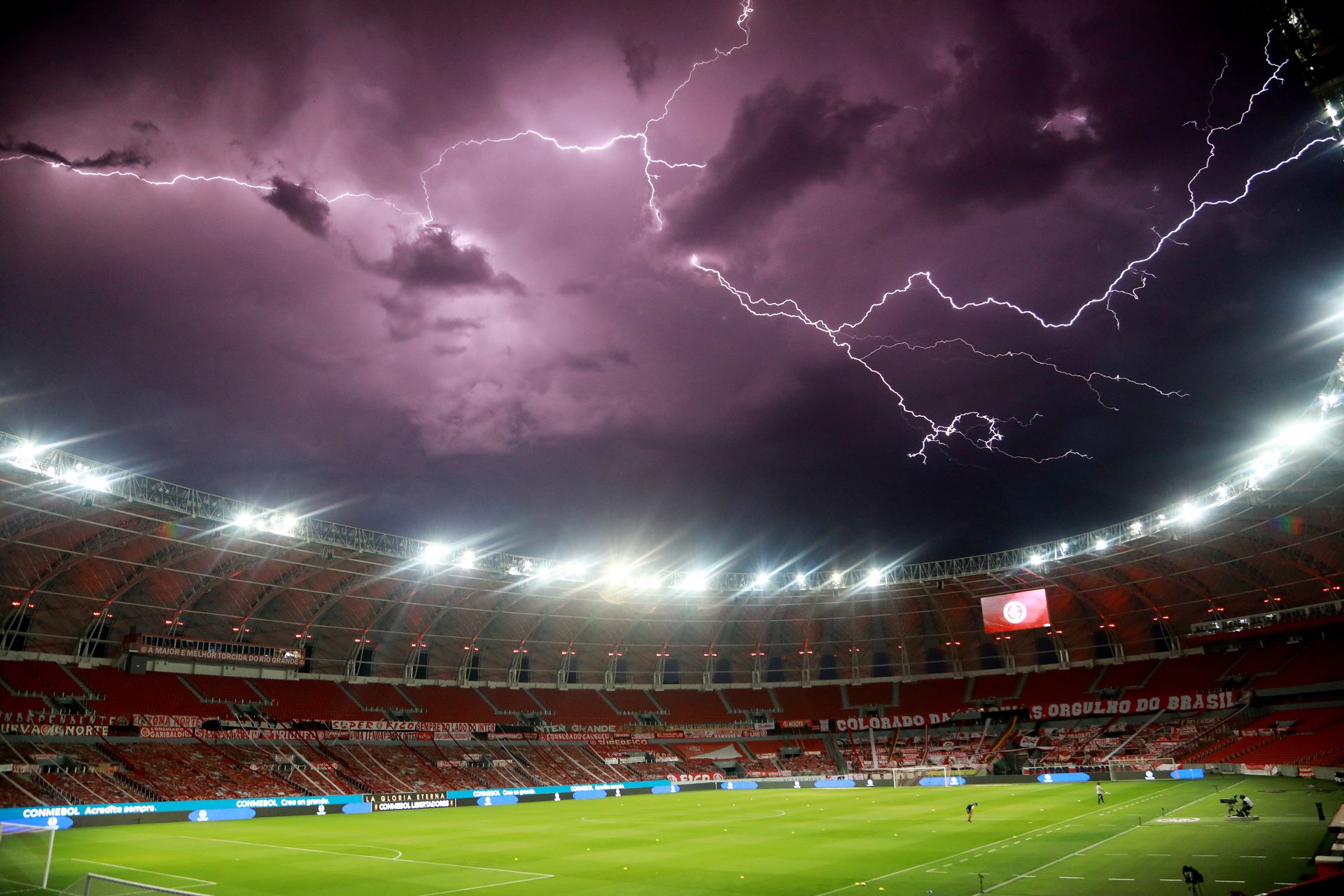 2020年12月2日,在巴西里约热内卢体育场,一场比赛即将开始,突然天空电闪雷鸣。