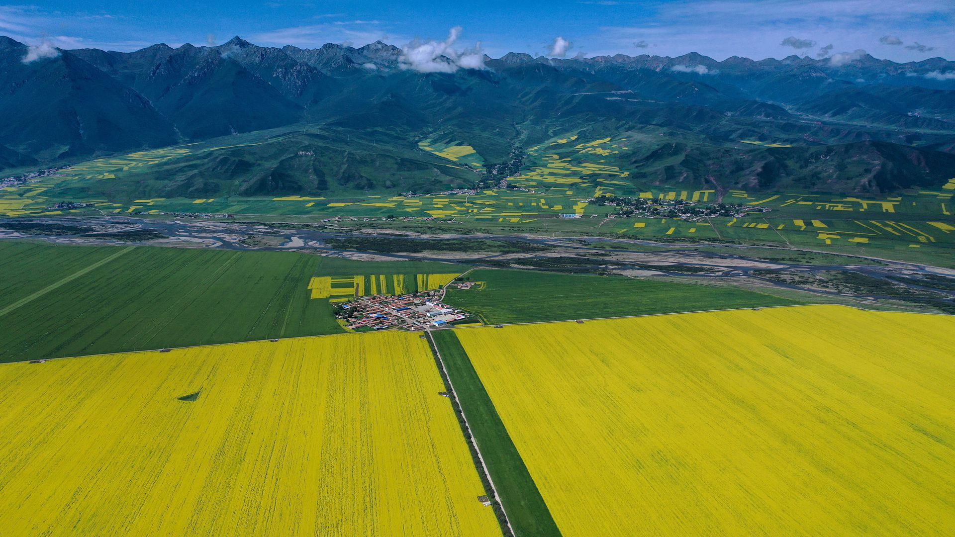 2020年7月22日,中国青海门源回族自治县的油菜花田。