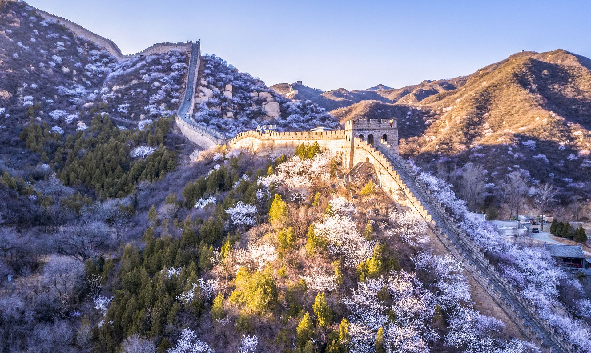 2020年3月27日,中国北京八达岭水关长城桃花绽放,分外妖娆。