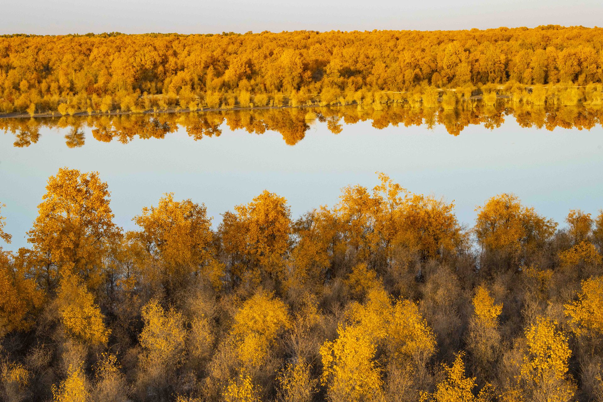 2020年10月22日,中国新疆塔里木河畔,阿克苏地区沙雅县月亮湾景区内的胡扬林景观。