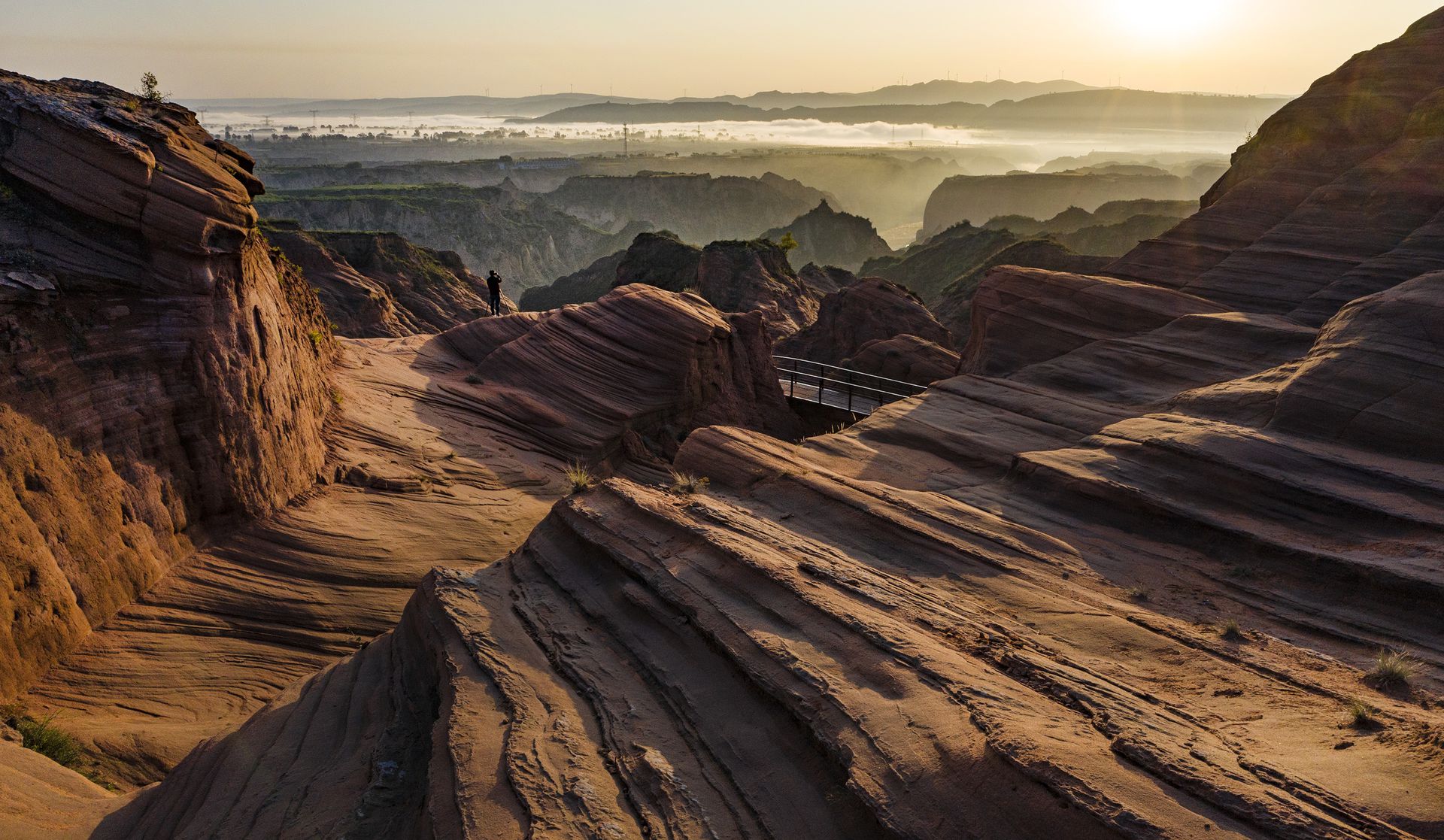 2020年9月24日,中国陕西省靖边县龙舟镇波浪谷丹霞景区晨景。
