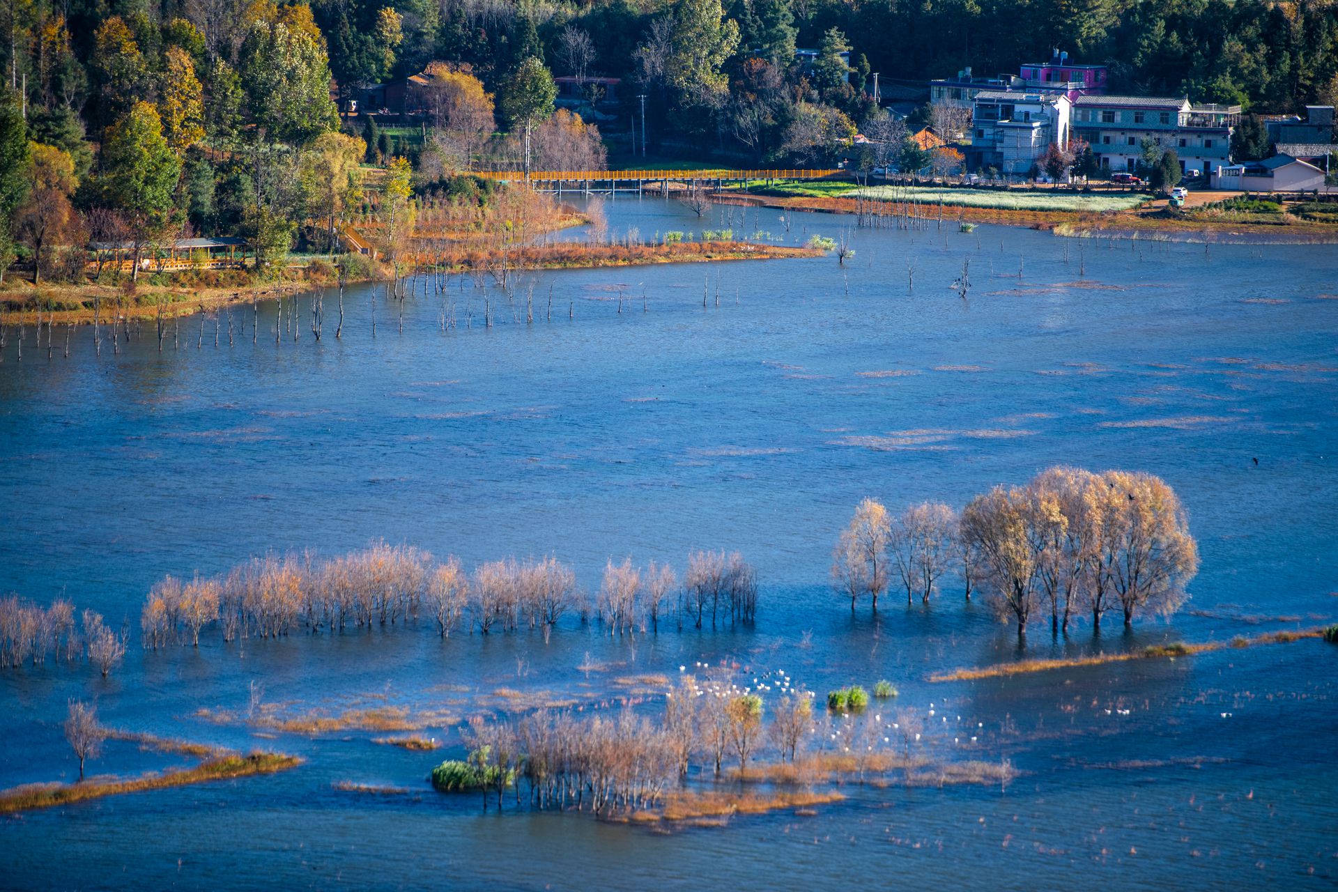 在冬季,中国南北东西各个地区景观却大不同。从北方的冰瀑与雾凇,到南方的粉樱与艳阳;从沙漠里的雪景,到山谷深处的云海……风景各异、多姿多彩。图为11月20日拍摄的念湖一景。念湖位于中国云南省曲靖市会泽县境内,海拔约2,500米。冬日里,念湖清澈透亮的湖水与水草、树木、山峦、村庄形成一幅美丽的画卷。
