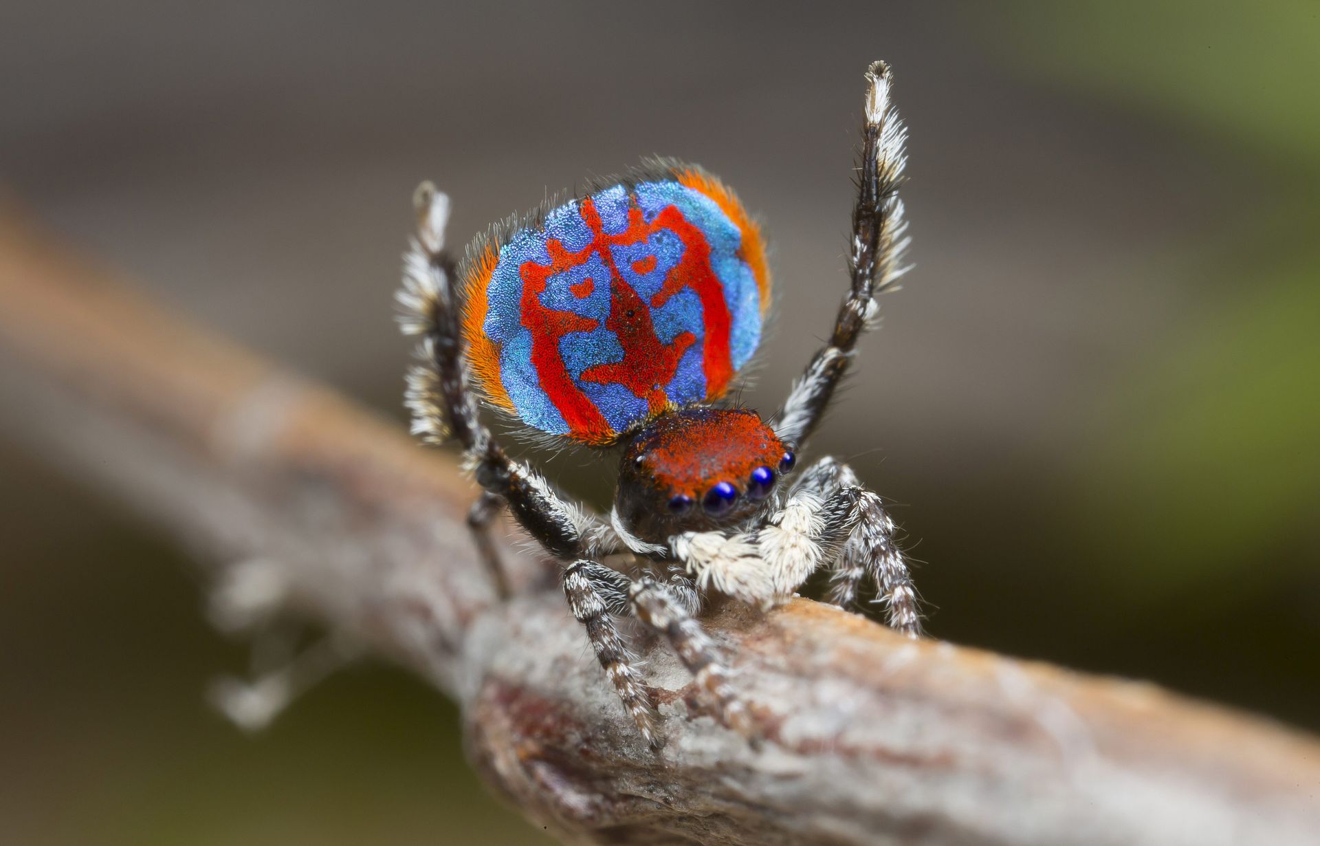 微小的雄性“孔雀蜘蛛”表演精心设计的舞蹈,炫耀自己壮观的颜色来吸引配偶。这些令人难以置信的小蜘蛛最长可长到5毫米,对于这样小的生物来说,它们似乎有着巨大的个性。这种“孔雀蜘蛛”是在澳大利亚被发现的,当雄性蜘蛛想要引诱雌性蜘蛛时,就会展示其孔雀尾巴一般绚烂的腹部,并发出声响。