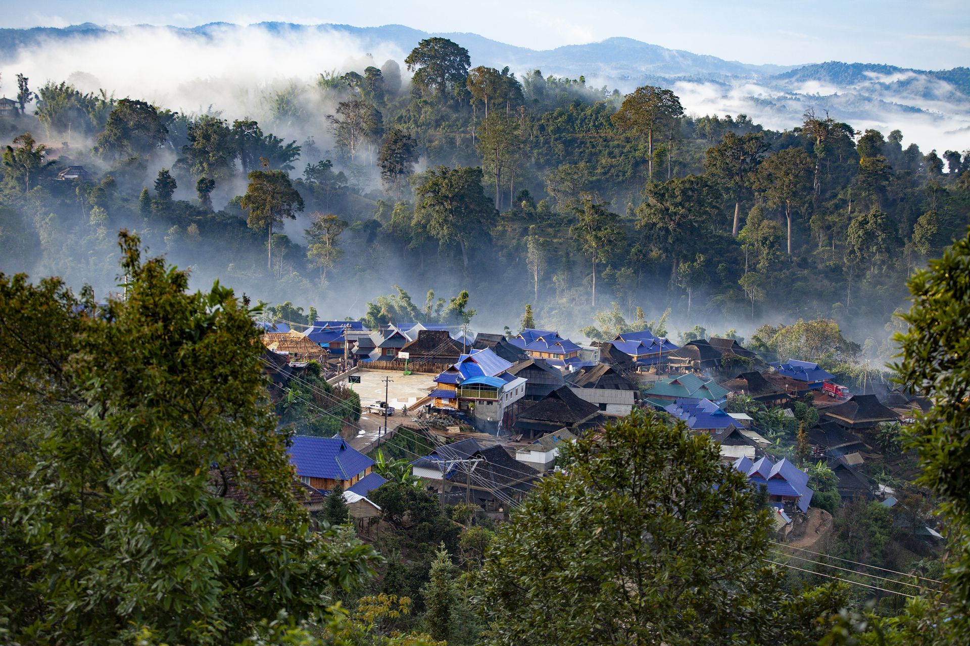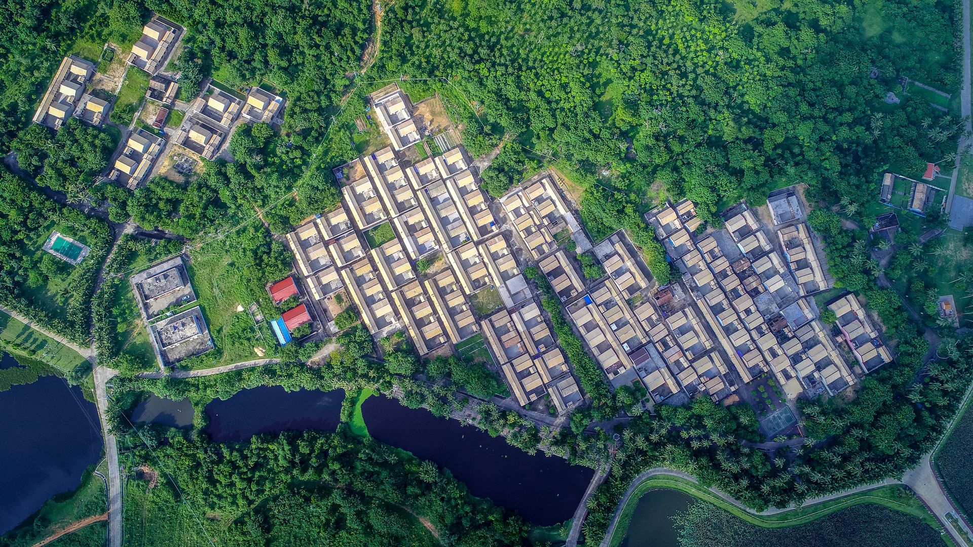海南路线包括海口、三亚、通什、万宁、文昌。图为俯瞰位于海南省文昌市昌洒镇的白土村,几排整齐干净的琼北民居环抱村庄的溪流文昌滨海旅游公路穿村而过。