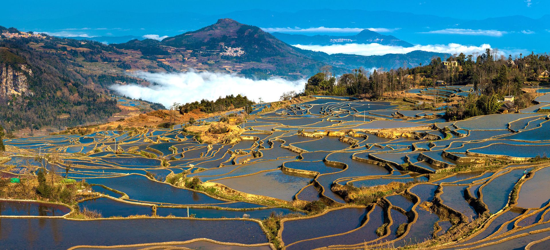 云南路线包括坝美、普者黑、昆明、普洱、西双版纳、勐海、景洪、元阳、蒙自。图为云南省元阳哈尼梯田风光。