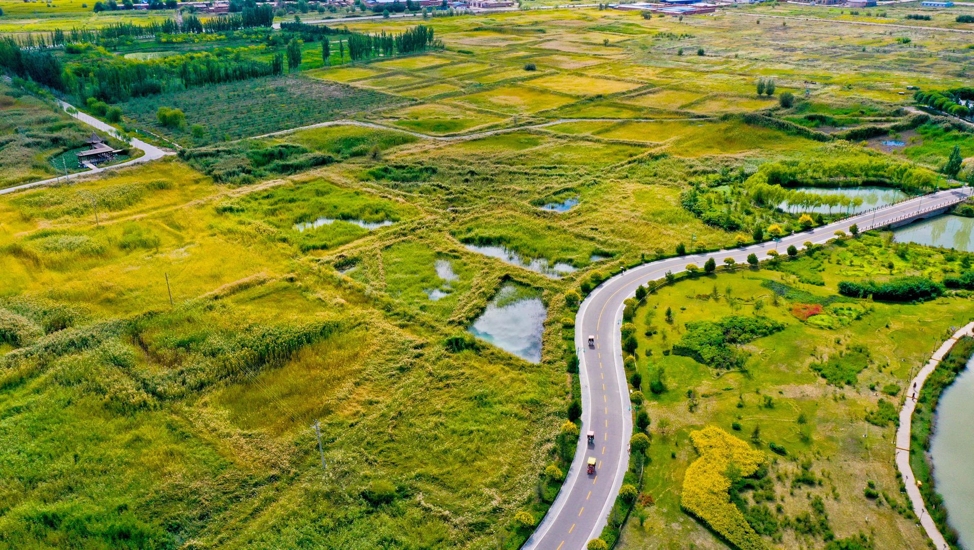 2019年9月15日,航拍甘肃张掖国家湿地公园,秋色如画。