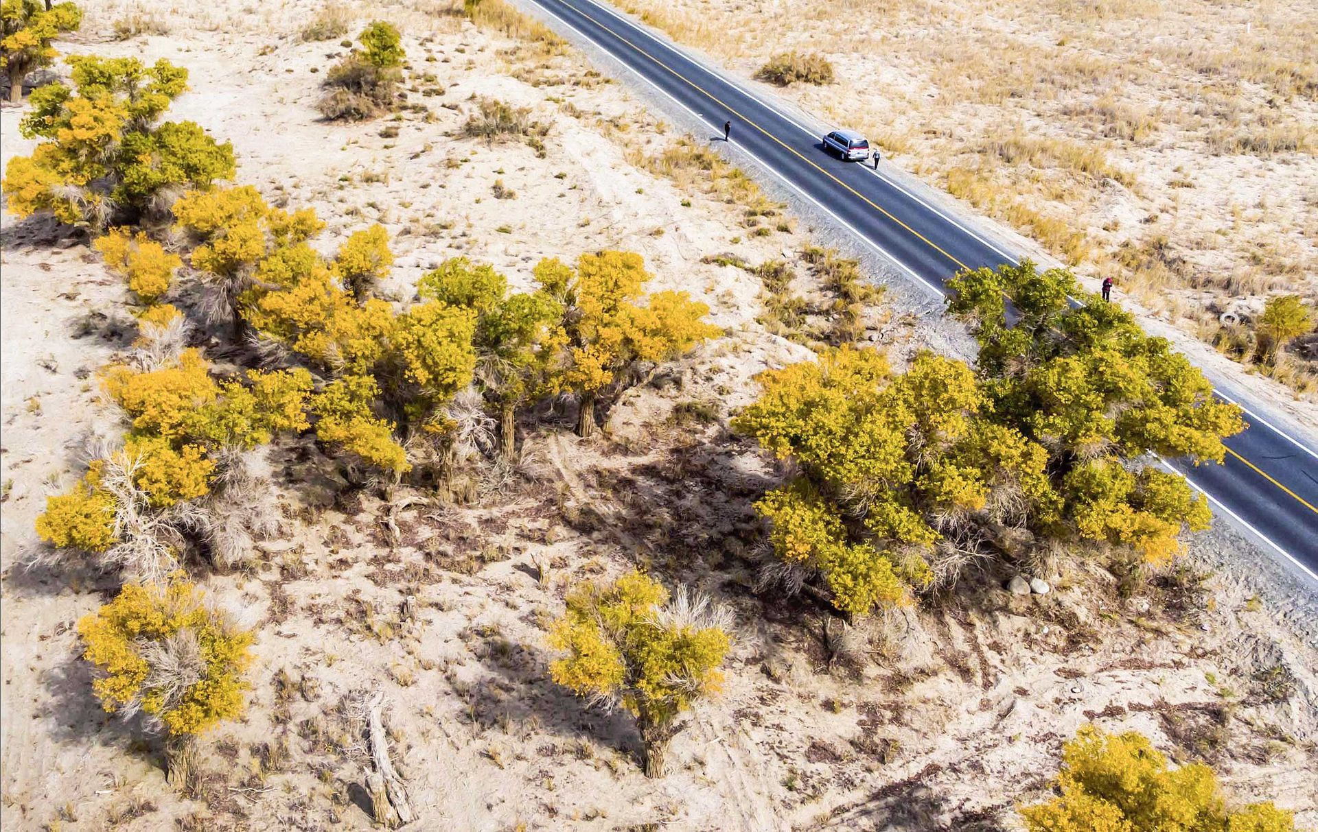 2018年10月20日,新疆和田罗布泊胡杨林。