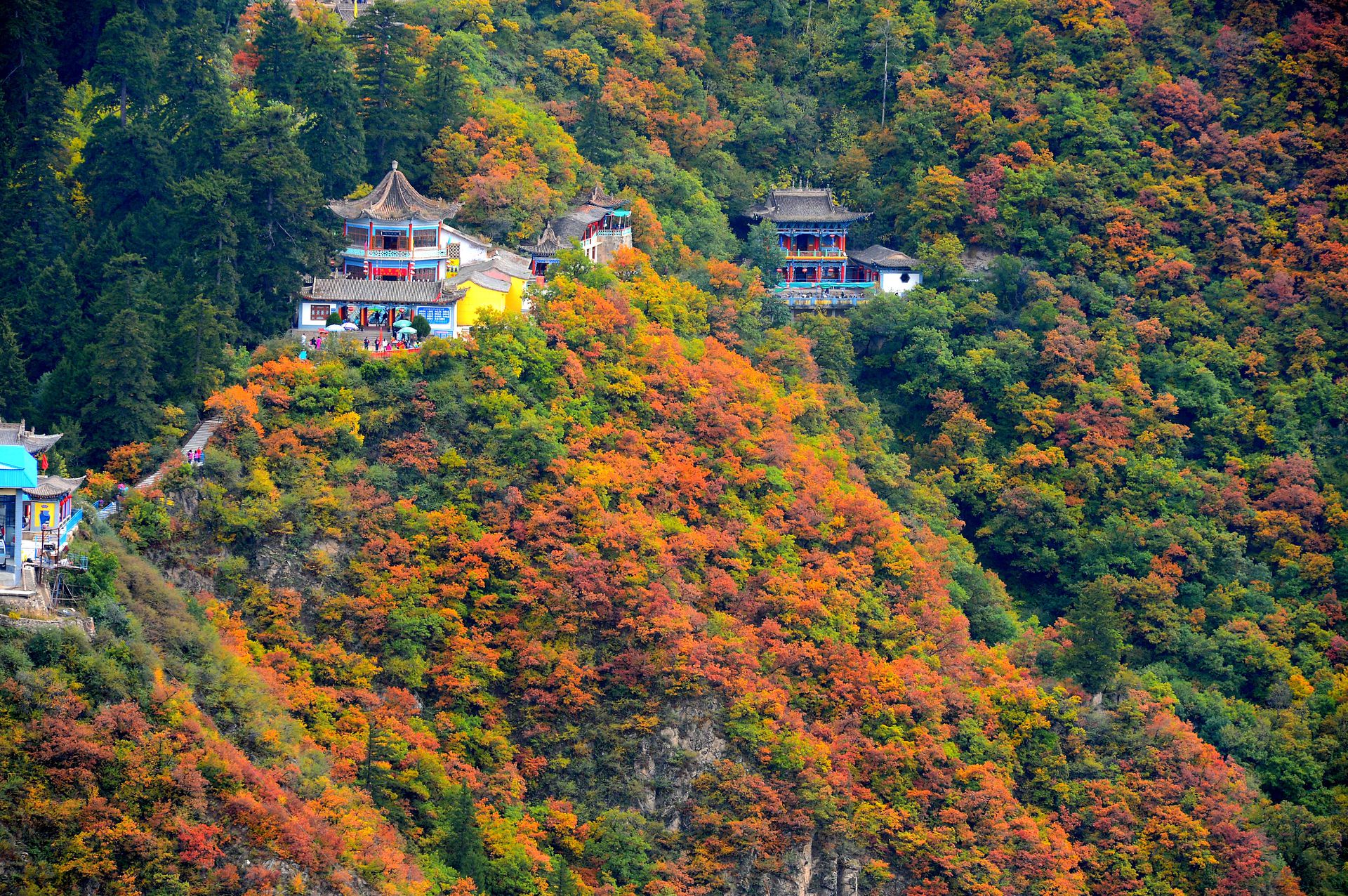 2016年10月7日,甘肃兰州兴隆山红叶美如“自然诗卷”。